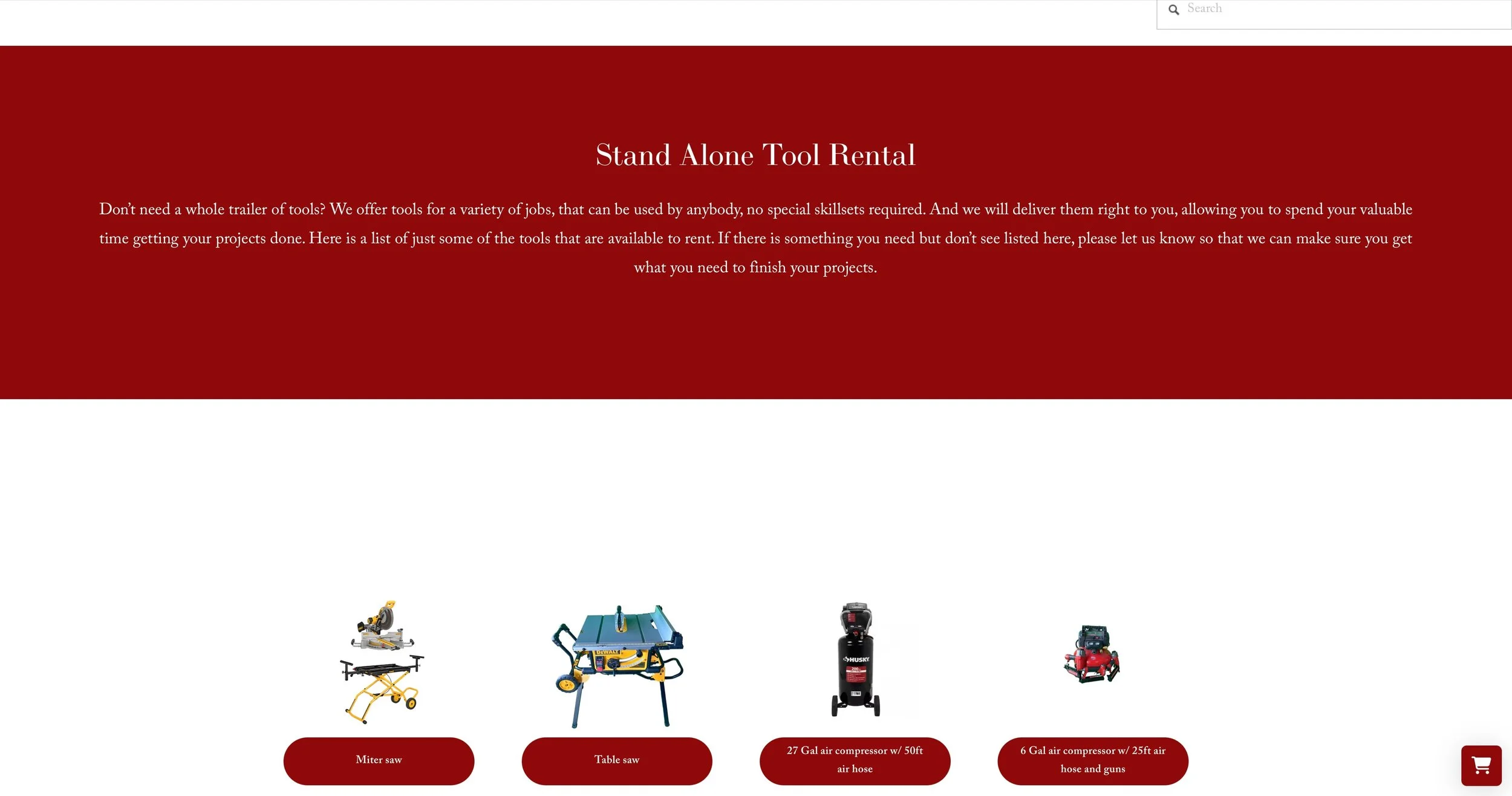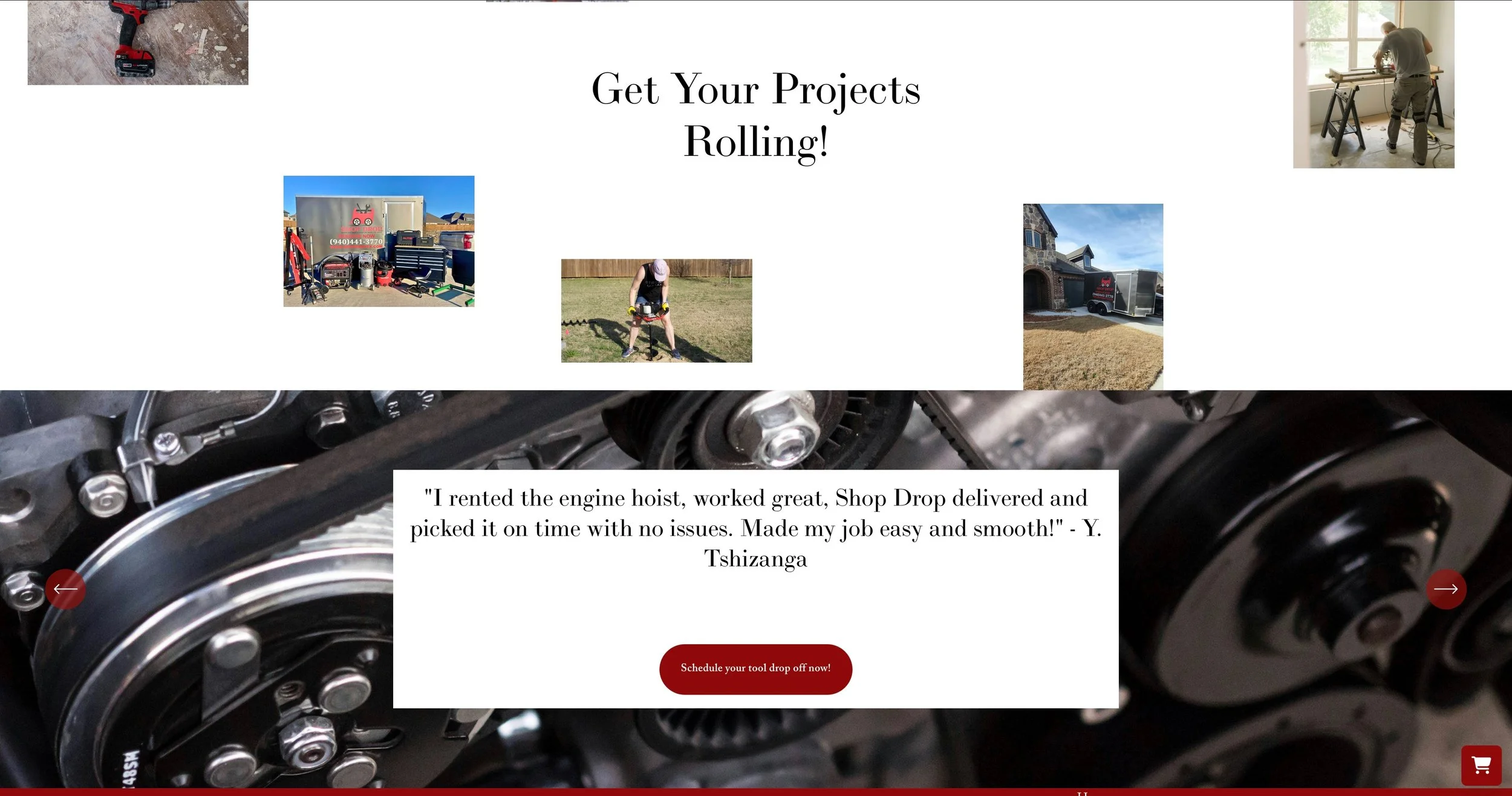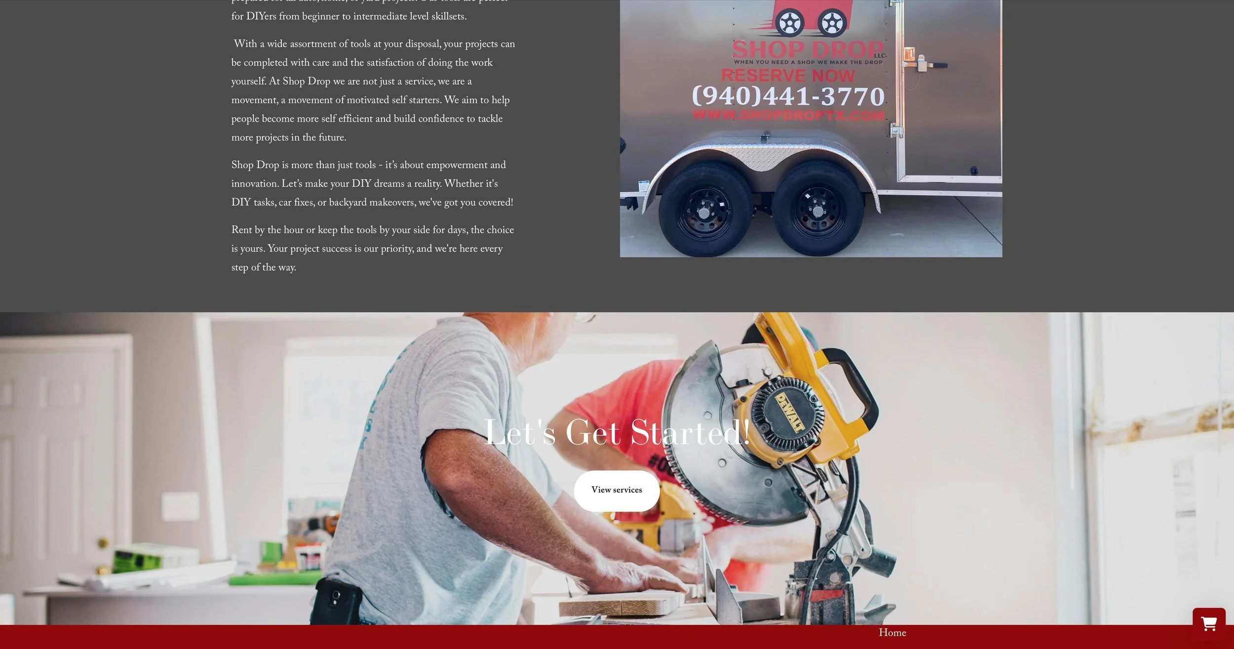 This is a website for a tool rental and delivery business. It is designed to showcase what they offer, allow customers to book and schedule their tool rental, as well as to inform everyone of who they are, how they got started, and what their vision/goals/ beliefs are.